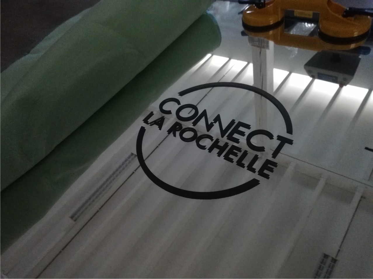 Nous gravons sur le verre en grand format. Nous utilisons la technique du sablage pour graver les miroirs, vitres et parois de douches par exemple.