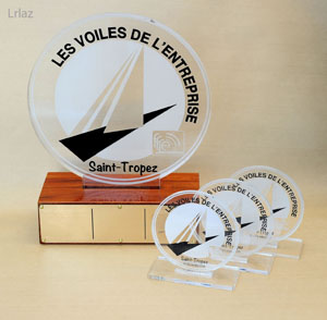 Trophée plexi sur socle, comprenant la gravure et la découpe de votre forme.